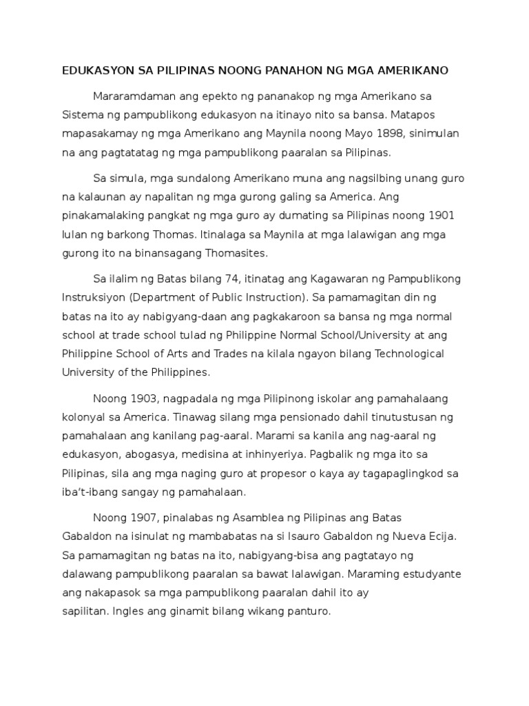 Edukasyon Sa Pilipinas Noong Panahon Ng Mga Amerikano Pdf