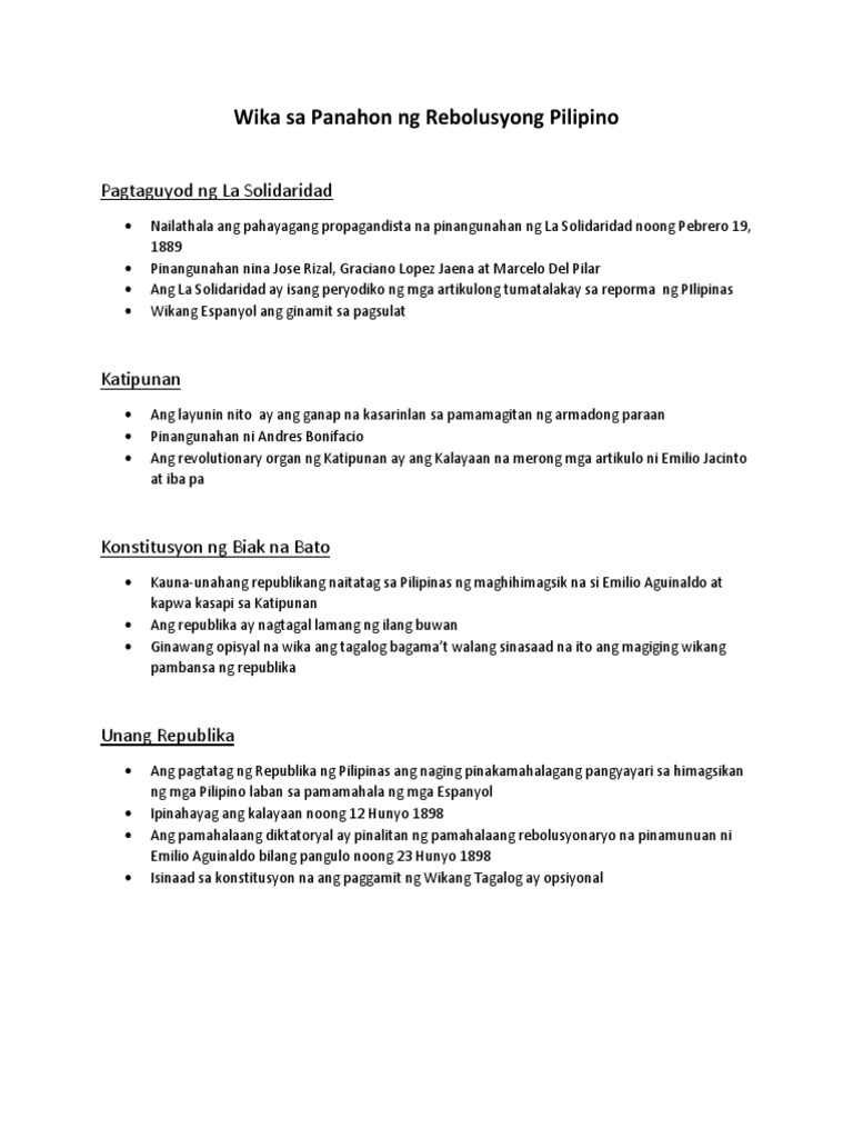 Wika Sa Panahon Ng Rebolusyong Pilipino Pdf