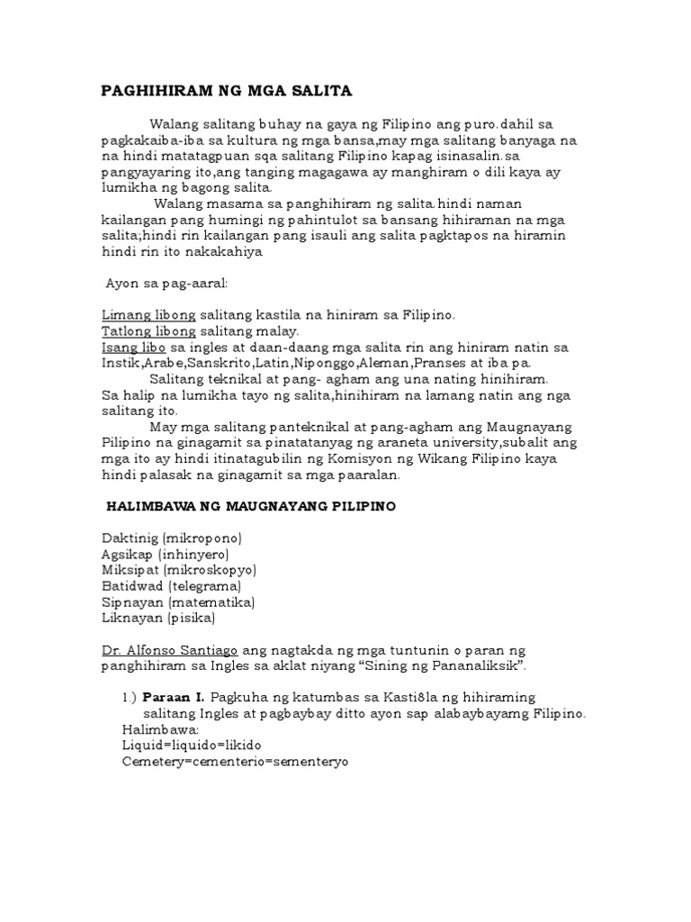 Ginamit na midyum o wikang panturo ang Ingles at mabilis na napalitan ang wikang Kastila. Mga Halimbawa Ng Hiram Na Salita Na Ginagamit Sa Pangungusap. Aling Wika ba ang Dapat na gami.