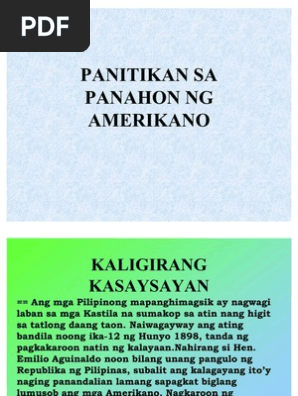 Pinaunlad ang kalusugan at kalinisan 4. Panahon ng Amerikano 1898-1946 0Pagkatapos ng mga kolonyalistang Espanyol dumating ang mga Amerikano sa pamumuno ni Almirante Dewey f Panahon ng Amerikano 1898-1946 0Lalong nabago ang sitwasyong pangwika ng Pilipinas dahil nadagdag ang Wikang Ingles o English f Panahon ng Amerikano 1898-1946 0Sa panahong ito ginagamit ang. Pagtutol sa kolonyalismo at imperialismo DIWANG NANAIG 1.