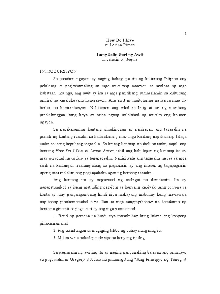 Pdf Isang Mapanuring Paghahambing Sa Ingles Filipino At Sebwanong Mga Salin Ng Orihinal Na Espanyol Na Lyrics Ng Pambansang Awit Ng Pilipinas A Comparative Analysis Of The English Filipino And Cebuano Translations