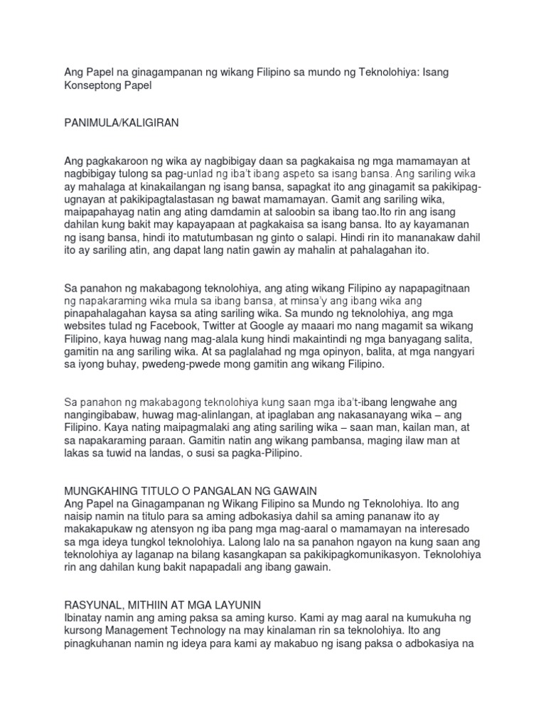 Ang Papel Na Ginagampanan Ng Wikang Filipino Sa Mundo Ng Teknolohiya Pdf