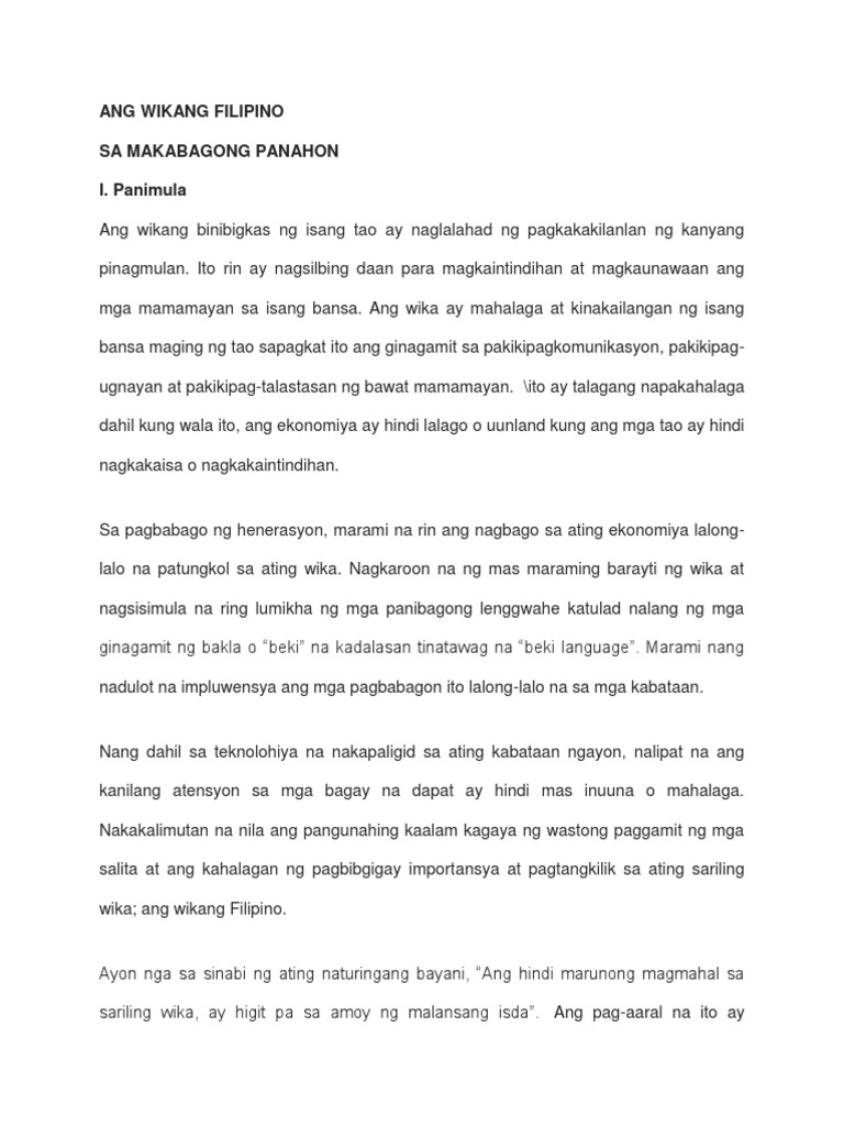 Paggamit Ng Wikang Filipino Sa Pagtuturo Pdf